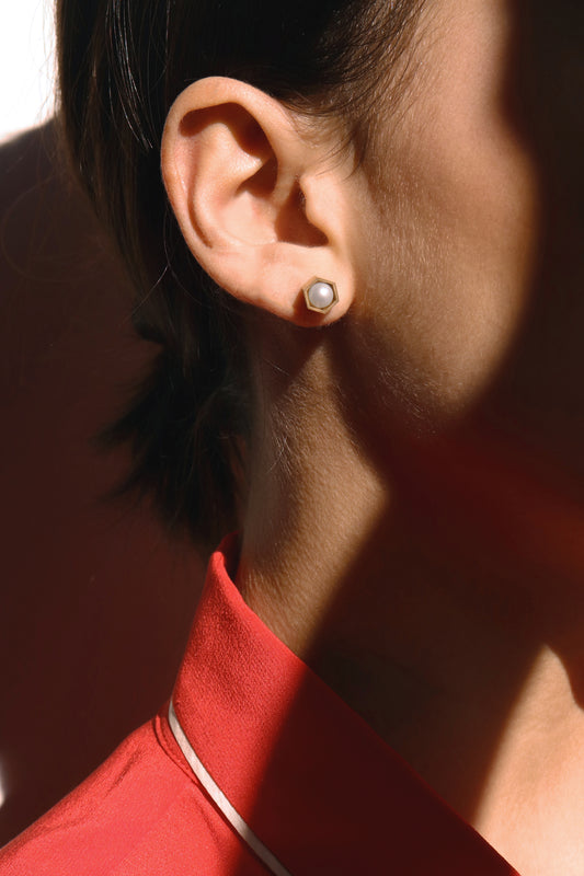 WHITE, YELLOW OR ROSE GOLD STUD EARRINGS WITH PEARLS