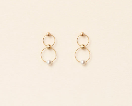 GOLD HANGING EARRINGS WITH FRESHWATER PEARL